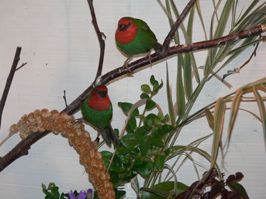 Zurück zu den Finken. Rotköpfige Papageiamadine