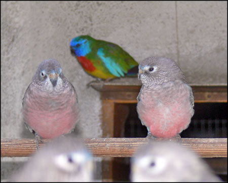 Junge Borkesittiche, hinten 1,0 Glanzsittich
