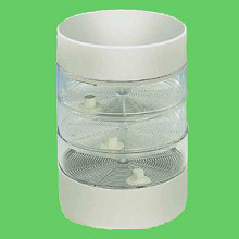 ..... besteht aus 5 Schalen. 3 Keimschalen, einer Auffangschale und einer oberen Schale. Das Keimfutter wird in die drei Keimschalen verteilt. Nicht zu viel Keimfutter hineingeben, da die Körner beim Quellen größer werden und so nicht genug Sauerstoff bekommen. Dies kann zu einer schnelleren Schimmelbildung führen. Die drei Keimschalen werden übereinander auf die Auffangschale gestellt, so dass die Ablauföffnungen möglichst gegenüber liegen, zumindest aber versetzt sind, und nicht genau übereinander liegen. So kann sich das durchlaufende Wasser in der Schale besser verteilen. Darauf kommt die erste Schale, die bis ca. 1-2 cm unter den Rand mit Wasser gefüllt wird. Das Wasser fließt nun durch alle Schalen bis in die Auffangschale. Der Keimautomat sollte an einer hellen Stelle, kein direktes Sonnenlicht, bei Zimmertemperatur auf gestellt werden. Sie sollten das Wasser ca. 2 mal täglich erneuern, also das Wasser aus der Auffangschale entfernen und neues Wasser durch alle Schalen durchlaufen lassen. So weichen die Körner im Wasser ein. Je nachdem wie lange die Körner im Wasser sind, kann man so bequem Quellfutter (ca.7 Stunden) oder Keimfutter (24-48 Stunden) herstellen. Wenn Keimfutter lange genug keimt, erhält man Grünfutter. Darauf achten, dass das Keimfutter nicht schlecht riecht oder sogar sichtbar schimmelt. In diesem Fall das Futter vollständig entsorgen. Keimautomat vor jeder Wiederverwendung sorgfältig gereinigen. |