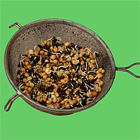 Trockenes Körnerfutter, bestehend aus leicht keimenden Saaten, die in Wasser gelegt, sich weiterentwickeln und nach wenigen Tagen zu keimen beginnen.