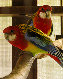 Haltung Große Voliere, ca. 3 x 1 x 2 Meter, mit angrenzendem frostfreiem Schutzhaus.