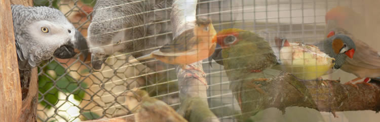 | Der Tierbestand: Barrabandsittich, Blaustirnamazone, Blaßkopfsittich, Graupapagei, Goldscheitelsittich, Kanarien, Nymphensittich, Rosellasittich, Stanlysittich, Wellensittich, Zebrafinken. |